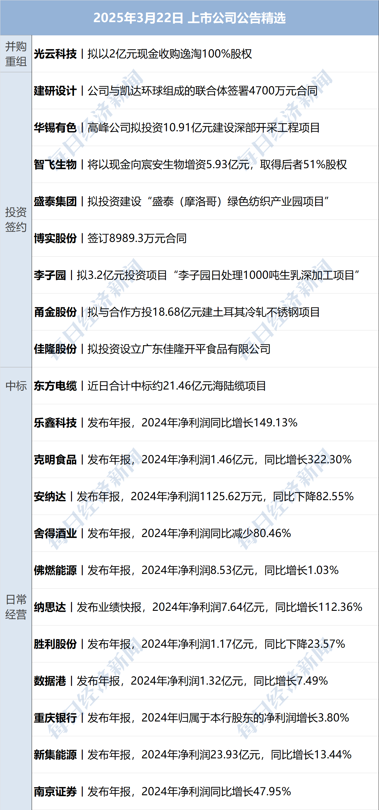 1 隔夜市场 美股三大指数小幅收涨,道指涨0.08%,本周累计上涨1.2%;纳指涨0.52%,本周累计上涨0.17%;标普500指数涨0.08%,本周累计上涨0.51%;热门科技股多数上涨,特斯拉涨超5%,苹果、Meta、微软涨超1%;Rivian、Lucid涨超6%,路特斯涨超5%,波音涨超3%,高斯电子涨超2%。中概股多数下跌,纳斯达克中国金龙指数跌1.73%,本周累跌2.31%;名创优品跌超8%,金山云跌逾6%,好未来跌超5%,蔚来、贝壳跌超4%,新东方、拼多多跌逾3%,理想汽车、小鹏汽车、哔哩哔哩跌超1%;极氪涨超3%。 国际油价小幅上涨,美油5月合约涨0.32%,报68.29美元/桶布油6月合约涨0.21%,报71.62美元/桶。 现货黄金跌0.71%,报3022.79美元/盎司,盘中一度跌破3000美元关口。国际贵金属期货普遍收跌,COMEX黄金期货跌0.51%,报3028.2美元/盎司;COMEX白银期货跌1.36%,报33.53美元/盎司。 欧洲主要股指集体收跌,德国DAX30指数跌0.67%,英国富时100指数跌0.68%,法国CAC40指数跌0.63%,欧洲斯托克50指数跌0.56%。 2 李强主持召开国务院常务会议 国务院总理李强3月21日主持召开国务院常务会议,研究建立健全涉企收费长效监管机制有关举措,审议通过《婚姻登记条例(修订草案)》。 3 国务院办公厅印发《关于进一步加强贸易政策合规工作的意见》 据中国政府网3月21日消息,国务院办公厅日前印发《关于进一步加强贸易政策合规工作的意见》(以下简称《意见》)。《意见》提出,合规评估应作为贸易政策出台前的必要前置环节,国务院部门、县级以上地方人民政府及其部门在贸易政策制定过程中,应按照“谁制定、谁评估”原则,对拟出台的政策措施开展合规评估,使其符合世界贸易组织规则和中国加入承诺。世界贸易组织其他成员对我国贸易政策提出的合规关注,国务院部门、地方人民政府要做好对外答复及相关后续工作。世界贸易组织其他成员对我国采取的违规措施,商务部要牵头积极开展磋商谈判,维护企业正当海外权益。 4 两部门联合公布《人脸识别技术应用安全管理办法》 据网信中国3月21日消息,近日,国家互联网信息办公室、公安部联合公布《人脸识别技术应用安全管理办法》(以下简称《办法》),自2025年6月1日起施行。《办法》对应用人脸识别技术处理人脸信息规定了以下处理规则:一是应当具有特定的目的和充分的必要性,采取对个人权益影响最小的方式,并实施严格保护措施。二是应当履行告知义务,处理残疾人、老年人人脸信息的,还应当符合国家有关无障碍环境建设的规定。三是基于个人同意处理人脸信息的,应当取得个人在充分知情的前提下自愿、明确作出的单独同意。基于个人同意处理不满十四周岁未成年人人脸信息的,应当取得未成年人的父母或者其他监护人的同意。四是除法律、行政法规另有规定或者取得个人单独同意外,人脸信息应当存储于人脸识别设备内,不得通过互联网对外传输。除法律、行政法规另有规定外,人脸信息的保存期限不得超过实现处理目的所必需的最短时间。五是应当事前进行个人信息保护影响评估,并对处理情况进行记录。 5 央行:根据国内外经济金融形势和金融市场运行情况,择机降准降息 央行网站3月21日消息,中国人民银行货币政策委员会2025年第一季度(总第108次)例会于3月18日召开。会议研究了下阶段货币政策主要思路,建议加大货币政策调控强度,提高货币政策调控前瞻性、针对性、有效性,根据国内外经济金融形势和金融市场运行情况,择机降准降息。保持流动性充裕,引导金融机构加大货币信贷投放力度,使社会融资规模、货币供应量增长同经济增长、价格总水平预期目标相匹配。 6 证监会:持续深入推进资本市场法治建设 据证监会网站3月21日消息,证监会表示,持续深入推进资本市场法治建设,加快打造安全、规范、透明、开放、有活力、有韧性的资本市场。坚持服务实体经济,支持新质生产力发展。持续完善资本市场基础制度体系,推动股票发行注册制走深走实,夯实市场稳定发展的制度基础,牢牢守住不发生系统性风险的底线。全面落实依法从严打击证券违法活动的工作要求,坚持监管执法“长牙带刺”、有棱有角,“零容忍”打击证券期货违法犯罪活动。坚持保护投资者的鲜明导向,把投资者保护贯穿于资本市场制度建设和监管执法的全流程各方面,不断健全投资者保护的制度机制。持续积极营造崇法守信的市场生态,推动资本市场高质量发展迈上新台阶。 7 针对“杨铭宇黄焖鸡米饭后厨乱象”事件 济南、郑州、商丘副市长被约谈 3月21日,针对“杨铭宇黄焖鸡米饭后厨乱象”事件,国务院食安办、市场监管总局约谈山东省济南市及河南省郑州市、商丘市人民政府副市长。约谈指出,食品安全关乎广大人民群众的身体健康和生命安全。“杨铭宇黄焖鸡米饭后厨乱象”事件,暴露出企业主体责任未有效落实、食品安全属地管理责任履行不到位、食品安全管理存在短板漏洞等问题,引发社会广泛关注,严重影响人民群众食品安全感。国务院食安办将对济南市、郑州市、商丘市整改落实情况进行现场检查、全程督办。 (央视新闻) 8 市场监管总局:2025年拟制定直播电商监督管理办法 据国家市场监管总局网站3月21日消息,市场监管总局部署2025年度重点立法任务。在健全平台经济常态化监管制度,促进平台经济规范发展方面,拟制定网络交易平台规则监督管理办法、直播电商监督管理办法、