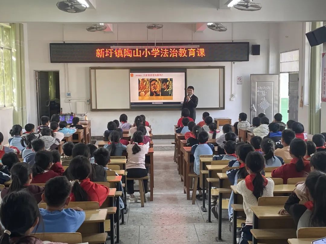 在新圩镇陶山小学,新圩人民法庭副庭长、法治副校长邓水金以电影《少年的你》为切入点,用同学们感兴趣、听得懂的方式和语言,介绍了什么是校园欺凌、校园欺凌的危害、校园欺凌的应对措施等知识,教育引导同学们要增强自我保护意识,自觉抵制校园欺凌,勇敢地对校园欺凌说“不”。