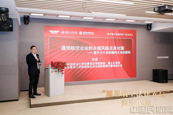 中国政法大学刑事司法学院教授、博士生导师,兼任最高人民检察院企业合规检察研究基地副主任印波做了题为“通用航空企业的合规风险及其对策——基于六十余份裁判文书的研判”的发言。印波教授提出,通航企业的合规风险包括环境污染责任纠纷、劳动争议纠纷、财产保险合同纠纷等。