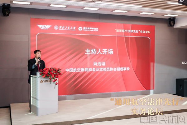 论坛第二环节的主题为“通航产业法律体系构建”,由中国航空器拥有者及驾驶员协会副理事长肖治垣主持。