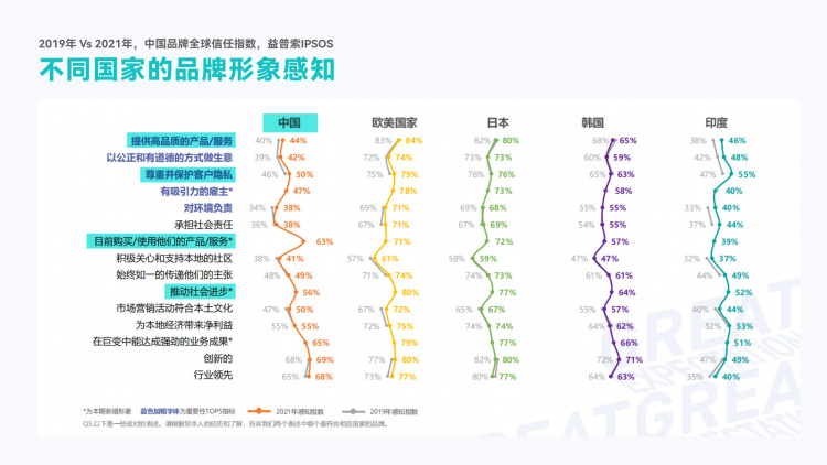 上述预测结合《2021 中国品牌全球信任指数(GTI®》分析,整体而言海外消费者对中国品牌的整体好感度是逐年良性提升,尤其新兴市场方面如阿联酋,沙特阿拉伯等明显正向。