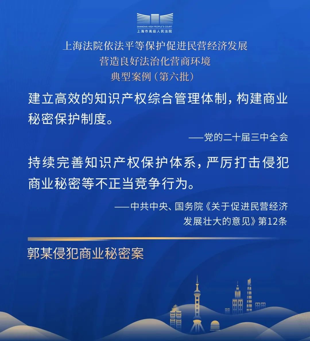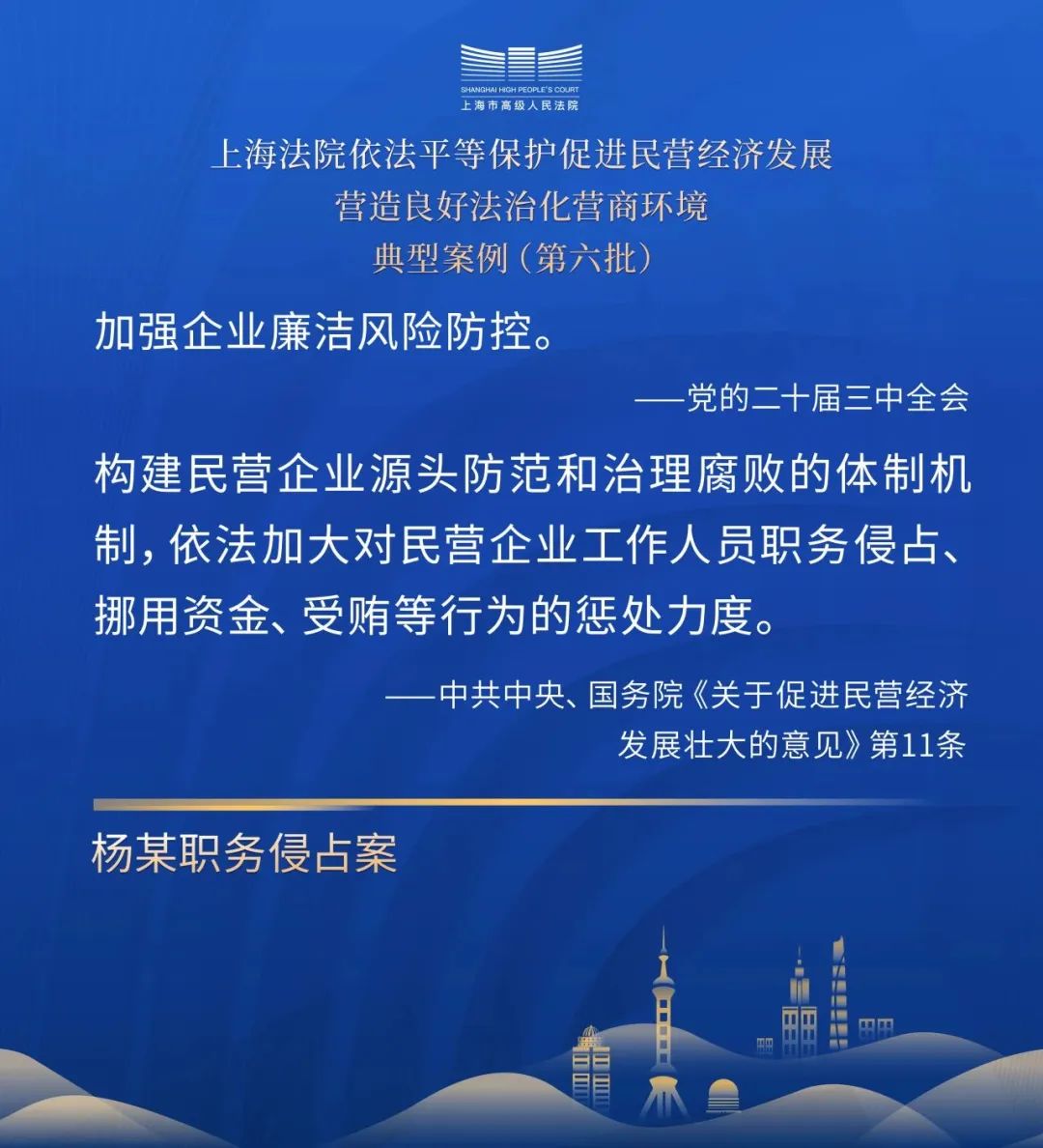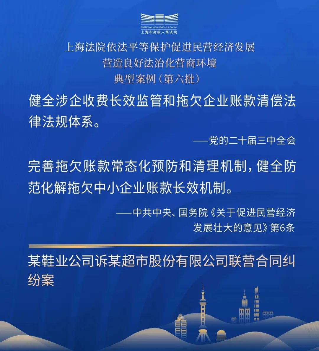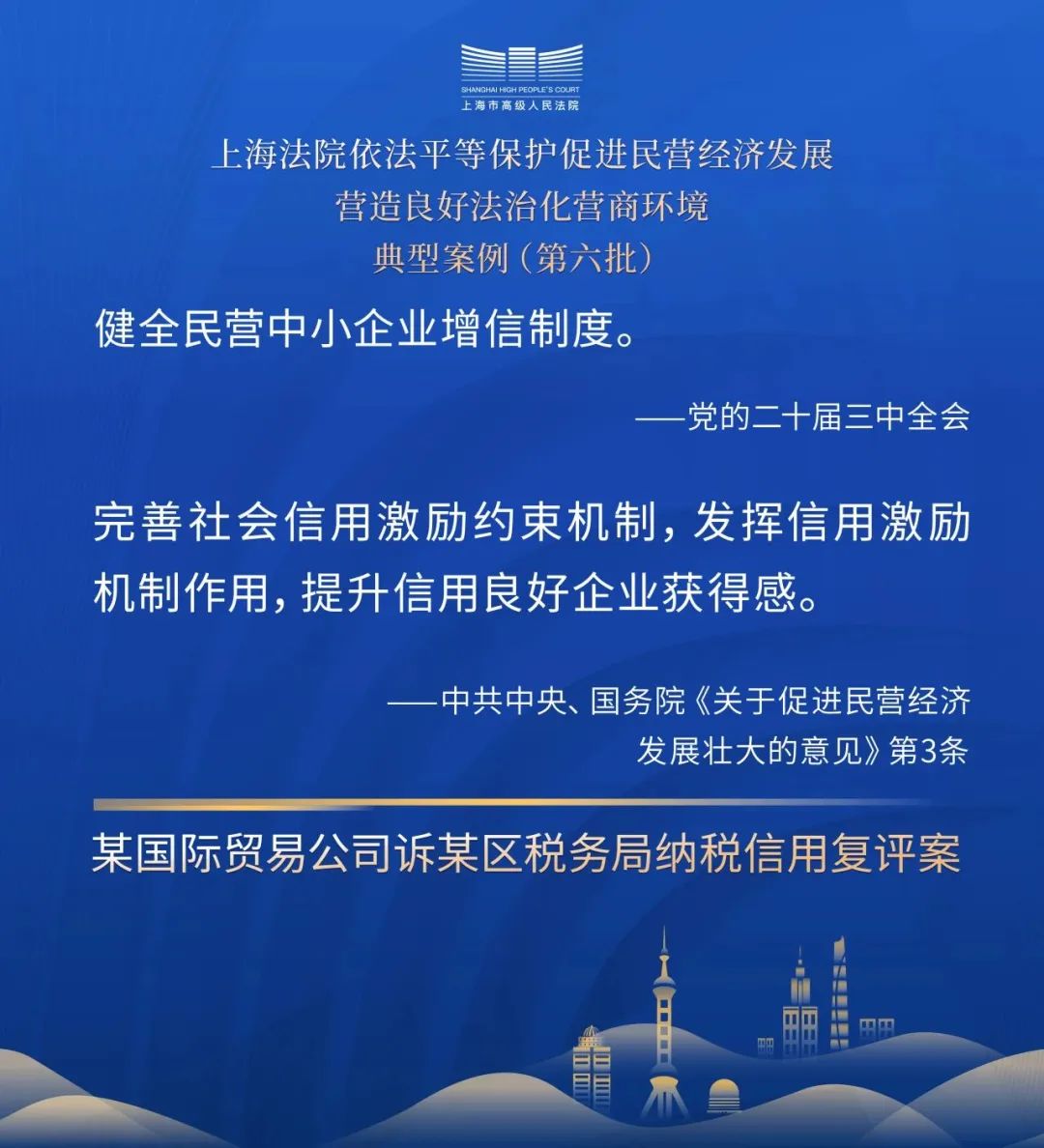 为更好地推进司法服务保障营商环境工作,根据党的二十届三中全会精神,以及中共中央、国务院《关于促进民营经济发展壮大的意见》《最高人民法院关于优化法治环境 促进民营经济发展壮大的指导意见》等文件精神,近日,上海市高级人民法院公布上海法院第六批依法平等保护促进民营经济发展的典型案例,为全市法院审判执行工作提供更多的参考和指引。