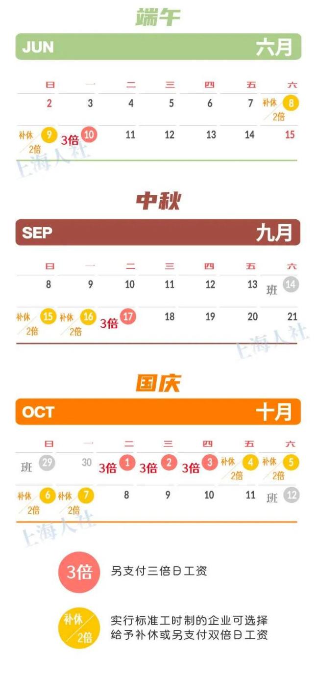 1.5月1日(劳动节)是法定节假日,用人单位安排劳动者加班,应支付不低于本人日工资的300%的工资报酬,不得以调休等方式代替。