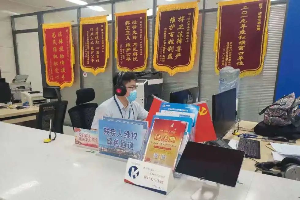 在市本级工、青、妇、残、劳动人事争议、高等院校、驻滨部队、鲁北监狱、看守所及法院、检察院等单位设立法律援助工作站21个,在市本级20余家律师事务所设立法律援助联系点,在市本级建立起横到边、竖到底的法律援助服务网络体系,极大方便了残疾人等困难群众就近及时获得法律援助。