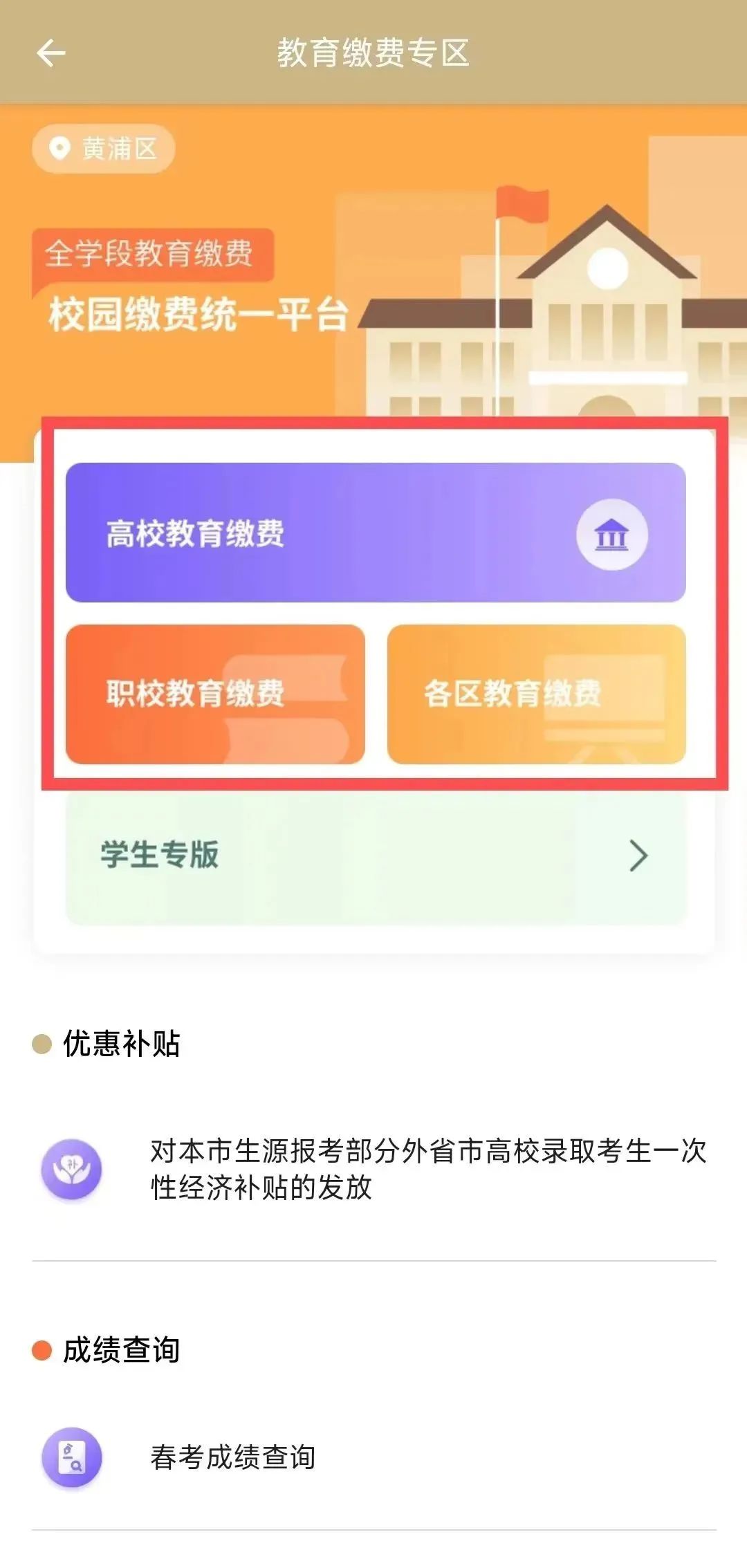 缴费入口:打开“随申办市民云”APP,在首页【精选主题】中找到“教育缴费”,或通过关键词搜索“教育缴费”,选择“教育缴费专区”事项,即可进入服务。