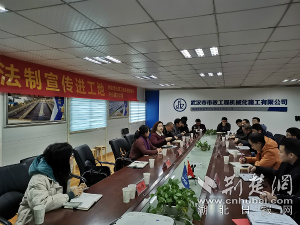 荆楚网客户端一荆楚网消息(记者丁楚风 通讯员胡仕成)12月30日下午,在武汉市政工程机施公司南湖项目部工地会场,高挂的施工总平面图彰显着城市建设者的激情,来自项目单位、建设、施工、监理方的一线城建人员近30人集聚一堂,共享一场丰盛的“法治大餐”。