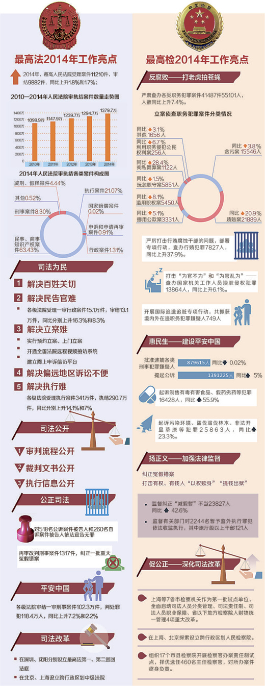 【报告】2014年,检察机关改变了以往主要公开职能职责和政务信息的做法,重点推进案件信息公开。加强案件程序性信息查询平台、法律文书公开平台、重要案件信息发布平台、辩护与代理预约申请平台等四大平台的建设。