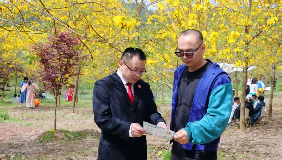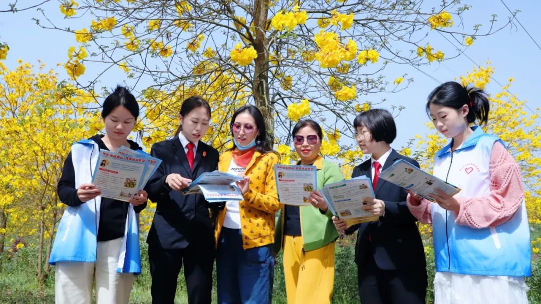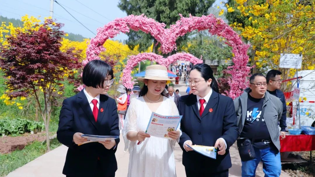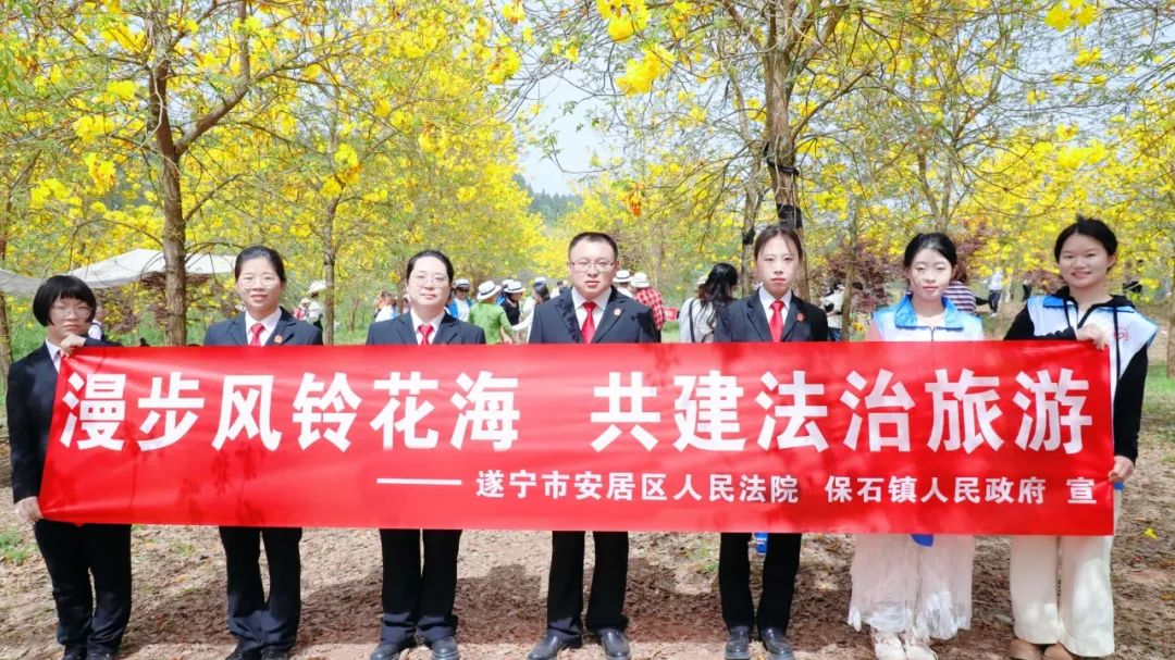 4月13日,安居法院联合保石镇政府组成一支“法治旅游”宣传队,穿梭于烂漫花海与如织游人之间,在花海深处一场春日限定的“法”式约会正浪漫上演。
