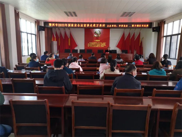 为迎接第七个全民国家安全教育日的到来,贯彻落实习近平总书记提出的“总体国家安全观”,提升全民国家安全意识,增强国家安全法宣传效果,3月28日鄂州市司法局在梁子湖区涂家垴镇万秀村举办国家安全法宣讲教育活动。