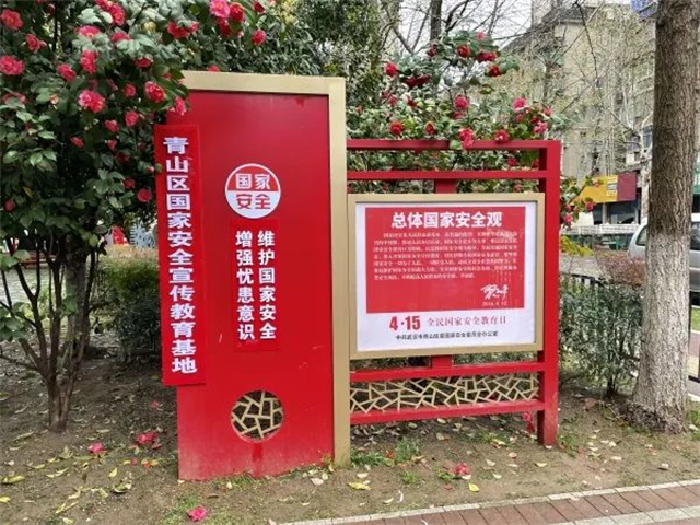 在第七个“全民国家安全教育日”即将来临之际,青山区在南干渠法治文化公园举行国家安全宣传教育活动,倡导人人学国家安全知识、增强总体国家安全观。