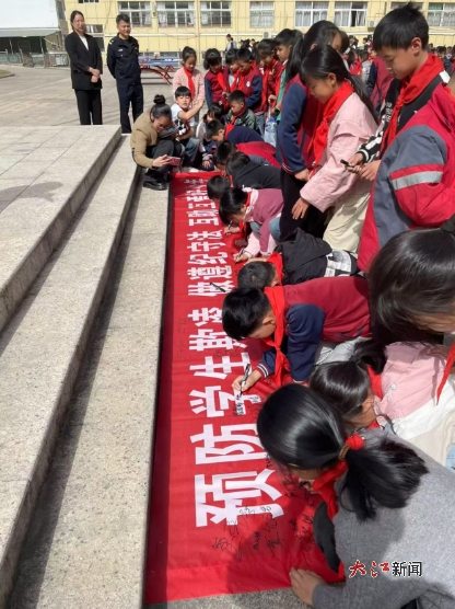 活动中,司法所所长胡沁,派出所教导员曹初明认真落实法治副校长工作职责,结合自身经验,用通俗易懂的语言、真实鲜活的案例,向同学们详细讲解了什么是校园欺凌、校园欺凌的主要行为、危害以及如何预防和应对校园欺凌,并组织学生们在宣传横幅上进行签名并宣誓。随后开展了防电信网络诈骗、防溺水知识宣传,筑牢校园安全防线。