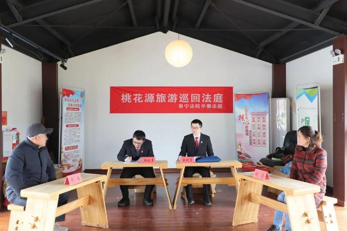 景区内,法官对一起土地承包纠纷案开展巡回审判。经耐心释法明理,双方最终达成了分期付款的调解协议。至此,双方握手言和。