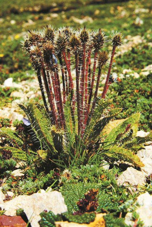 形色惊艳的“梦幻之花”绿绒蒿,独有一种桀骜孤高的气质,艳而不娇,用绒毛或刚毛武装自己,在三江源国家公园等高寒之地迎风笑日,顽强生长。图为多刺绿绒蒿 张胜邦摄