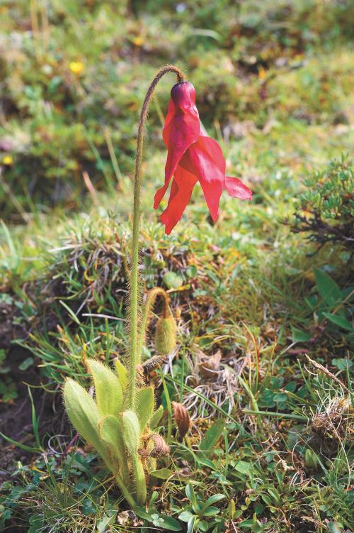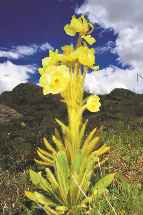 在三江源国家公园内,广泛分布着红花绿绒蒿、全缘叶绿绒蒿、多刺绿绒蒿、总状绿绒蒿、五脉绿绒蒿等,特别是全缘叶绿绒蒿作为经典藏药“吾巴拉”使用,具有清热解毒、消炎止痛等功效,可用于治疗肺炎、肝炎、头痛、水肿等病症,干燥后可全株入药,具有较高的药用和经济价值,还因花朵色泽艳丽具有较高的观赏性。(张胜邦)