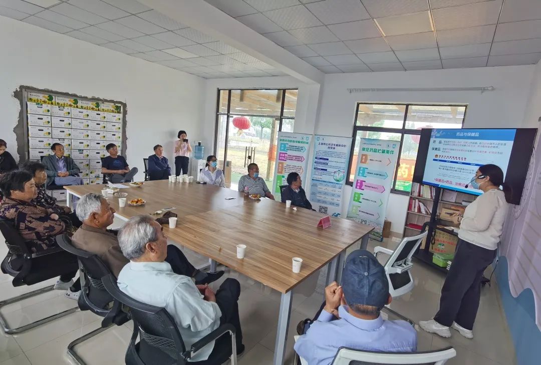 在桑园村田间地头上的农业合作社,药学部的王佳药师和呼吸与重症医学科的徐萍医师为桑园村的村民们分别作了《家庭小药箱管理——知识加油站》和《肺结节》的科普讲座。王药师从药品与保健品的区别到配药单解读,再从药品的正确服用和储存,最后到过期药品的处理,较为全面的介绍了家庭常备药品的管理知识;徐医生则从体检报告中的一枚肺结节展开,讲解了肺结节的定义与分类、肺结节与肺癌的关系,以及发现肺结节后应该如何就医、检查,最后还指导大家如何养成良好的健康生活习惯,以避免肺结节的产生及进一步增大。讲座结束后,现场村民纷纷提问,医师和药师们也一一耐心解答,现场气氛热烈。通过这种贴近百姓的健康科普讲座,将合理用药的理念传播出去,体现了药师的社会价值,这也更坚定了药师们走出医院药房,走近社区百姓,把健康带给老百姓的决心。
