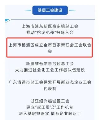 全国总工会发布全国工会重点工作创新案例(2024年第1期),上海市杨浦区的案例“上海市杨浦区成立全市首家新联会工会联合会”上榜。