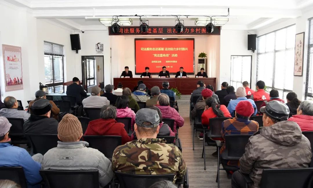 12月1日上午,上海崇明法院与竖新镇油桥村村委会在油桥村联合开展“司法服务走进基层 法治助力乡村振兴”宪法宣传活动,崇明法院党组成员、副院长陈斌,竖新镇党委副书记(政法)姚一兵出席,油桥村党支部书记、村委会主任施红柳,堡镇法庭副庭长方产,崇明法院法官、法官助理代表和油桥村村民代表近50人参加。活动由崇明法院法官助理田春锋主持。
