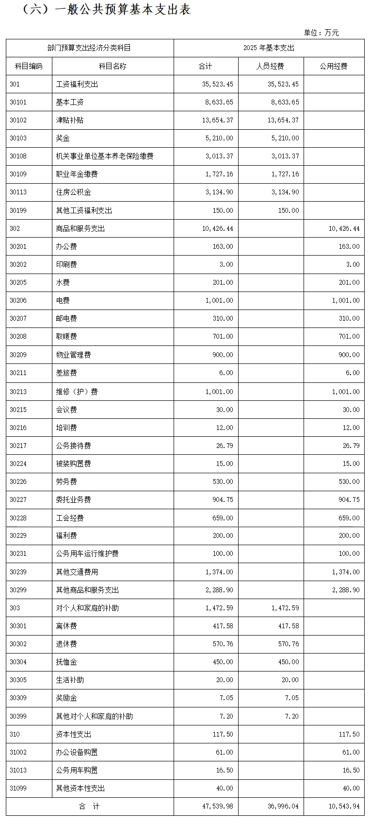 (六)一般公共预算基本支出表