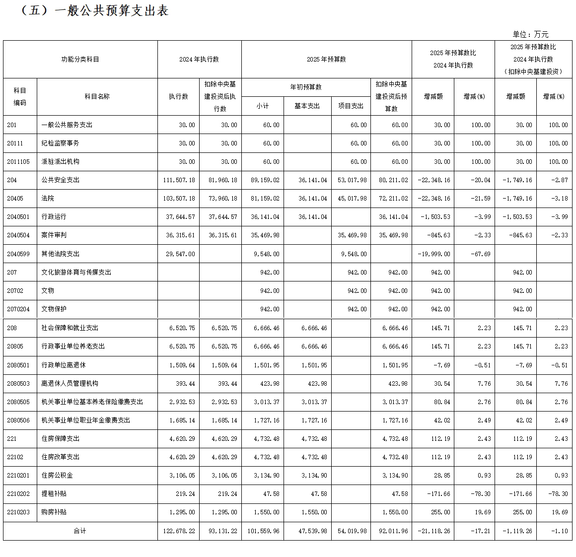 (五)一般公共预算支出表