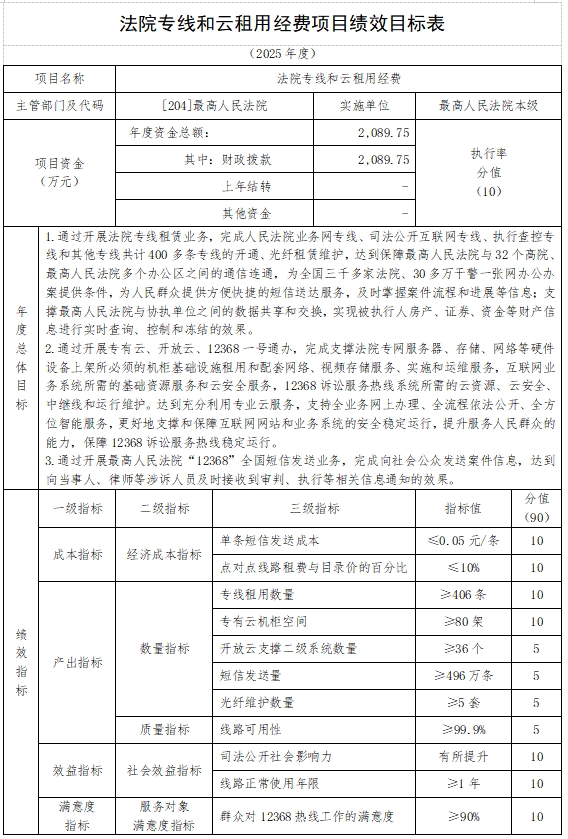 2025年“二上”预算中最高人民法院本级项目支出绩效目标实现全覆盖,涉及一般公共预算拨款54,019.98万元。
