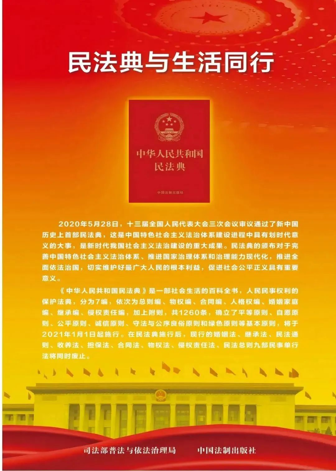 2020年5月28日,十三届全国人大三次会议表决通过了《中华人民共和国民法典》,该法自2021年1月1日起正式施行。《中华人民共和国民法典》共计7编、1260条,各编依次为总则、物权、合同、人格权、婚姻家庭、继承、侵权责任以及附则。2025年5月,我们迎来了《中华人民共和国民法典》施行后的第五个“民法典宣传月”。民法典的每一项条款都紧密关联着我们的日常生活,让我们采用图解的形式,一同深入了解《中华人民共和国民法典》在实际生活中的具体案例呈现。