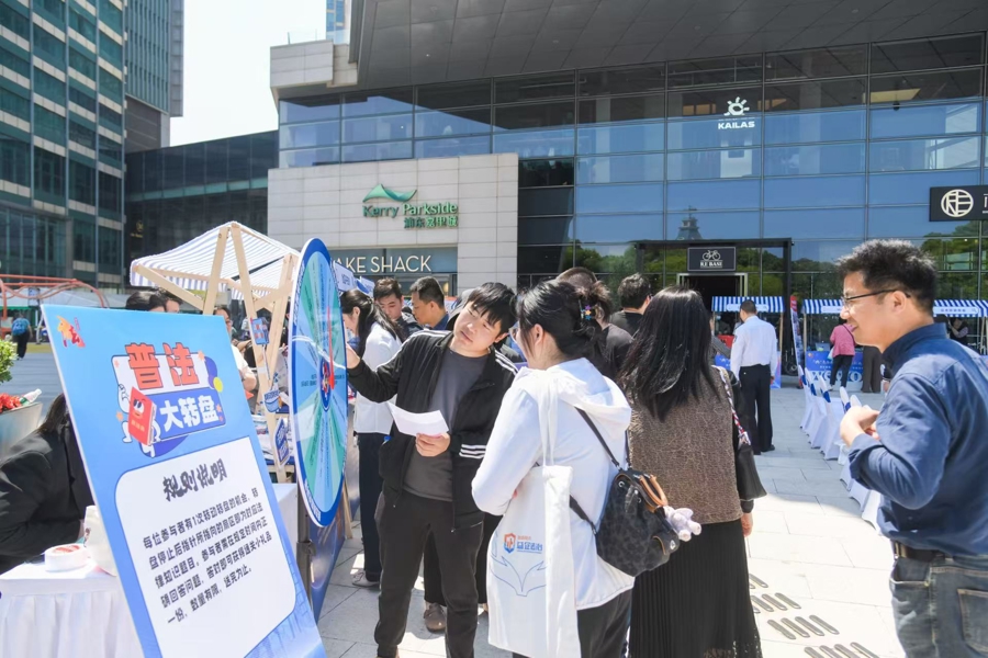5月12日,“‘典’亮会展经济,护航企业发展”——2025年浦东新区首场“民法典宣传月”启动活动在浦东嘉里城广场展开,现场不仅有法治小游戏、知识竞答,还有各种活动周边礼品可领取。