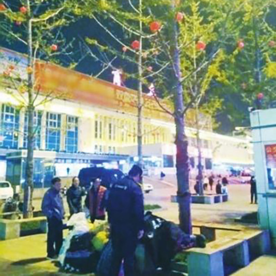 10月19日,记者发现一则农民工火车站深夜熟睡,民警脱棉警服为其盖上的信息刷爆了微博和微信朋友圈。信息写道,10月18日晚,河南商丘火车站广场,网友汤先生拍到暖心一幕:一位民警看到一名农民工露天睡在水泥台上,脱下自己的棉警服为其盖上防寒保暖。经询问,这位民警姓谢,是在广场上巡逻的特警,他原本想提醒那位农民工兄弟注意财物安全,看到他盖得太单薄,遂有此举,然后继续巡逻去了。