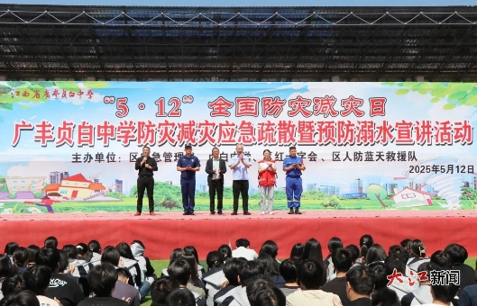 大江网/大江新闻客户端讯 (通讯员 纪金红)为进一步加强平安校园建设,增强师生的防灾减灾意识,5月12日,时值第17个全国防灾减灾日,广丰区应急管理局、区红十字会、蓝天救援队、贞白中学等单位在贞白中学联合开展了“防灾减灾,守护生命”专题教育。区应急管理局领导和学校党委副书记、校长周霓出席活动并讲话,全校5000多名师生参与,通过沉浸式体验与专业指导,将“安全第一”理念深植心中。
