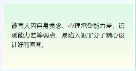 被害人金融知识不足或风险意识薄弱是多数电信网络诈骗最终得逞的直接原因,因此,提高对金融产品和服务的认知能力及自我保护能力,是大家防骗避损的核心应对之策。