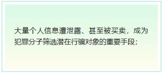 个人信息泄露、贩卖等现象突出已成为诈骗犯罪黑色产业链的重要组成部分。由于许多电信网络诈骗方式都以获取被害人隐私信息为先决条件和必经步骤,因此,大家要把好个人信息保护的第一道关口,从源头杜绝隐私外泄对于避免财产损失至关重要。