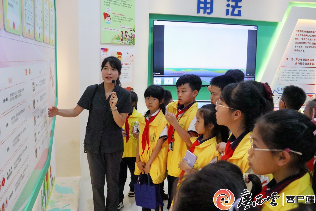 5月17日,公益研学活动“星火少年爱梧州”来到梧州市中级人民法院青少年法治教育实践基地,法官助理姐姐带领梧州市少先队员们以趣味形式学习法律知识。梧州法院 供图