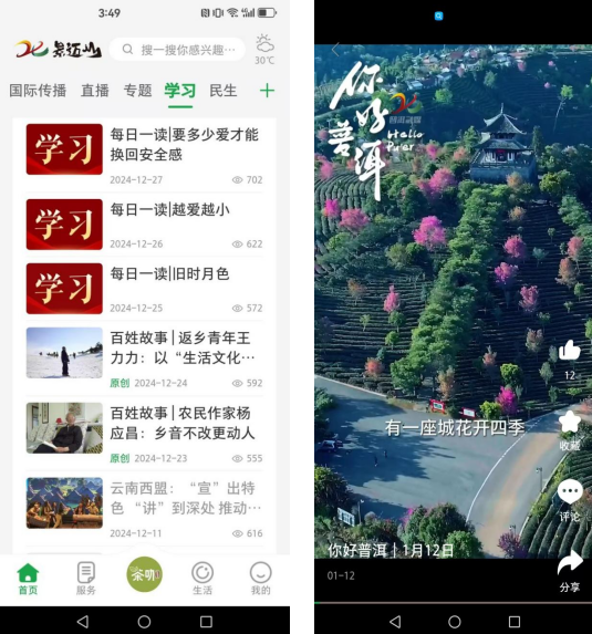 普洱市融媒体中心坚持把社会效益放在首位,积极履行社会责任,构建问政、民生服务平台,搭建政府和群众沟通的桥梁,及时刊发各类政务信息、惠民政策,做好政策解读。2024年,主要围绕党委政府中心工作,对所开展的工作、所取得的经验和成绩,以及涌现出的先进人物进行宣传。承办“中华文化边疆行——走进普洱”以及“玫瑰书香·心向未来”诗歌朗诵、“爱我国防——强国复兴有我”演讲比赛等品牌活动,影响力不断增强。推出新时代公开课这一理论宣讲特色课程,采用“音视频+故事+理论”的方式,以小切口反映大主题,用典型人物、动人故事让理论宣讲深入人心,在情理交融中,深刻阐述习近平新时代中国特色社会主义思想的真理伟力。
