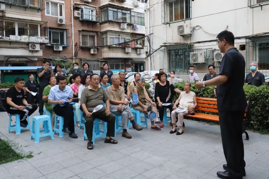 周五下班后,和平法院党组成员翟鑫国,党组成员、副院长刘文澄带领我院民一庭、民二庭和刑庭部分法官来到香榭里社区银行里小区内,为小区居民带来一场不一样的普法小讲座。