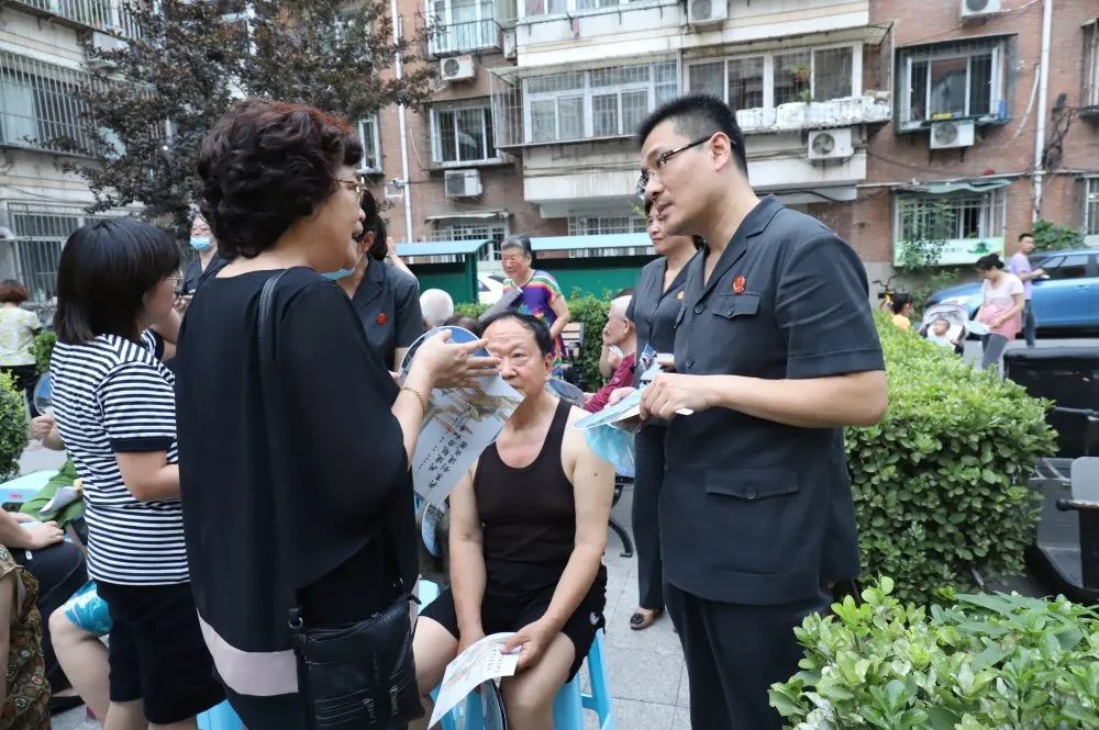 炎夏的傍晚,天气虽热,但居民参与的热情不减,小区花园里,到场的所有法官和居民们三三两两围坐在一起,家长里短,大事小情,聊着居民们感兴趣的话题,解答着居民们的法律疑问,时不时还说起居民的幸福生活,大家欢声笑语,一片祥和。