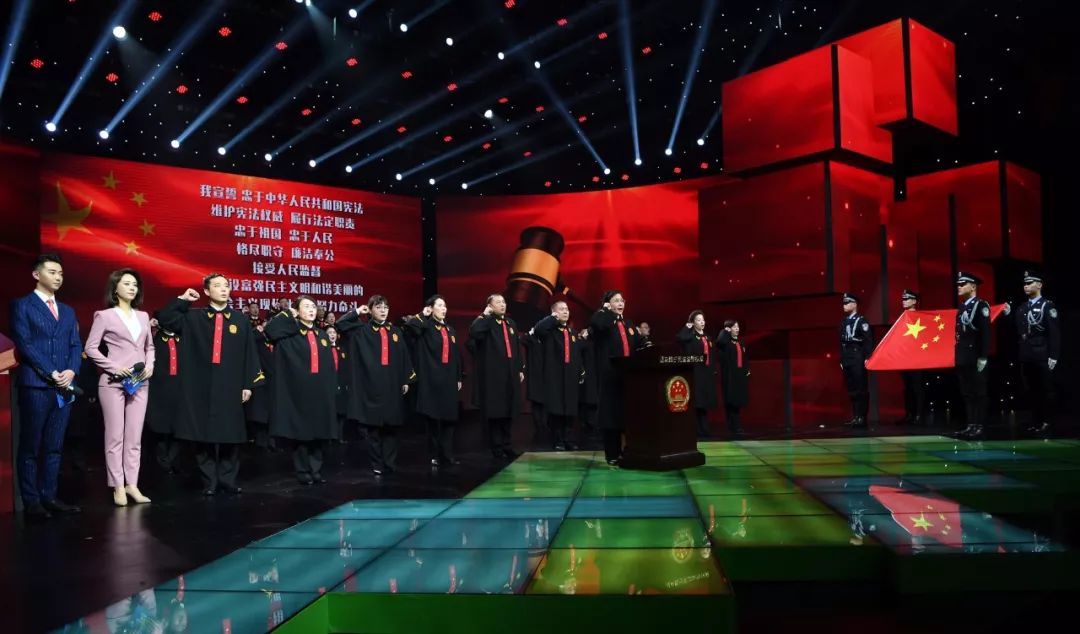 随后,10名“齐鲁最美法官”、20名“齐鲁最美法官”提名奖获得者、20名法官代表共同走上舞台,面向国旗庄严宣誓。