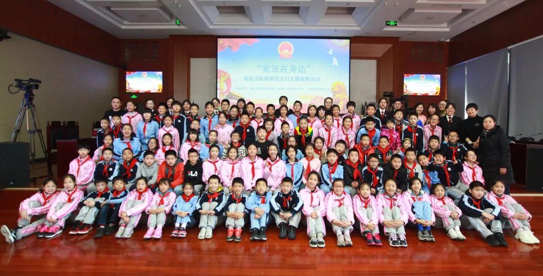 在国家宪法日即将来临之际,海淀法院于12月3日联合海淀区学区管理中心开展了“宪法在身边”系列主题教育活动。在首场活动中,来自北京市中关村二小万泉河校区的100余名师生在少年法庭法官们的带领下,开始了一场别开生面的法治之旅。