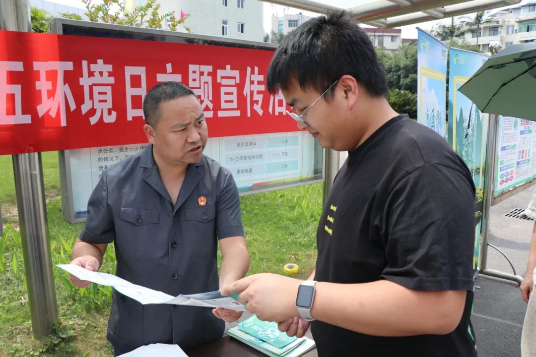 同日,合江县法院联合县生态环境局走进川天华企业,围绕《环境保护法》《大气污染防治法》等法律法规,摆“法治摊”为工人普法。