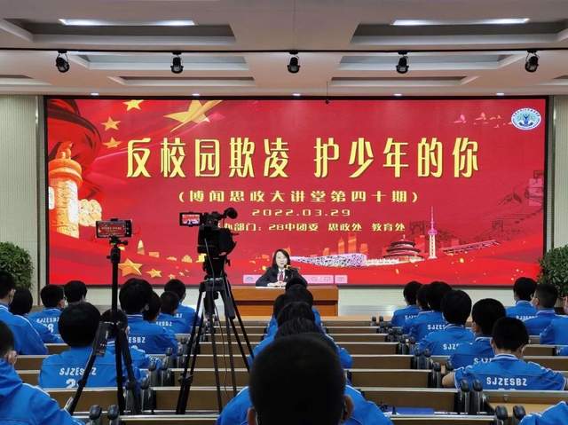 送法进校园,护苗再行动。2022年3月29日下午,石家庄铁路运输法院法官助理史在走进石家庄市第二十八中学,以“反校园欺凌、护少年的你”为主题为该校中学生上了一堂法治课,讲授校园欺凌行为涉及的刑事犯罪、行政处罚、民事侵权赔偿以及《中华人民共和国未成年人保护法》相关法律知识。