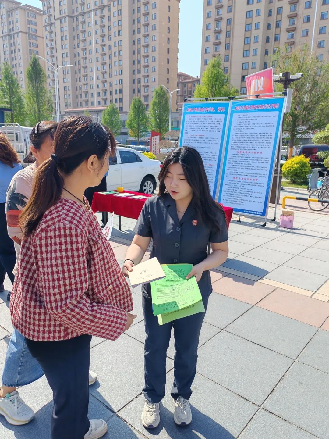 “翻开一本书,听一首歌,购买一件商品,处处都是知识产权的身影,咱们平时要注意购买正版书籍、有防伪码的药品、商品……”活动现场,干警用通俗易懂的语言结合具体案例讲解与日常生活中相关的商标、著作权知识产权保护知识,并辅以宣传手册引导群众识别假冒伪劣产品的技巧,让群众更加直观的感受到知识产权就在身边,增强了群众对知识产权的关注度,给来往群众送上了兼具专业与实用性的普法小课堂。