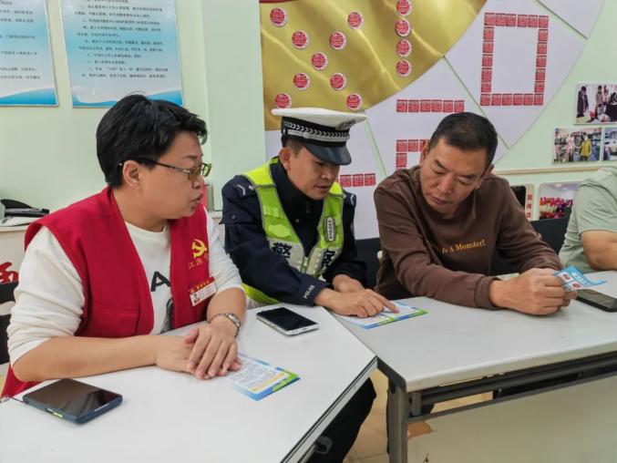 为进一步提高辖区群众交通安全意识,临江大队民警走进新世社区,结合居民日常交通出行方式和交通工具,通过拉家常的方式,面对面向社区居民普及安全出行、紧急避险等方面的交通安全知识,提醒广大社区居民要摒弃侥幸心理,时刻牢记“安全”两字,养成良好的出行习惯,避免交通事故的发生。