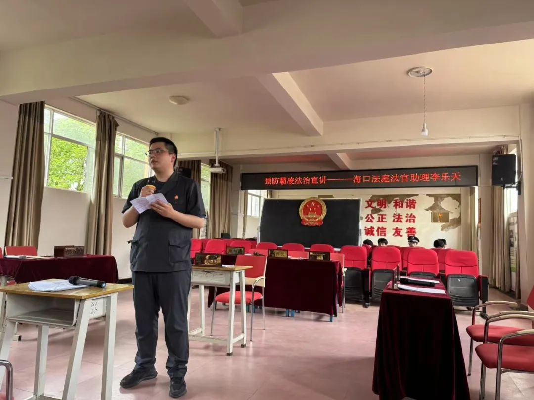 模拟法庭结束后,干警结合民法典中未成年人保护相关条款,以典型案例为切入点开展预防校园霸凌法治宣讲。通过深入浅出的讲解和现场互动,向同学们阐述了校园霸凌的危害、相关法律责任以及如何运用法律武器保护自己,进一步强化了同学们的自我保护意识和法治观念。