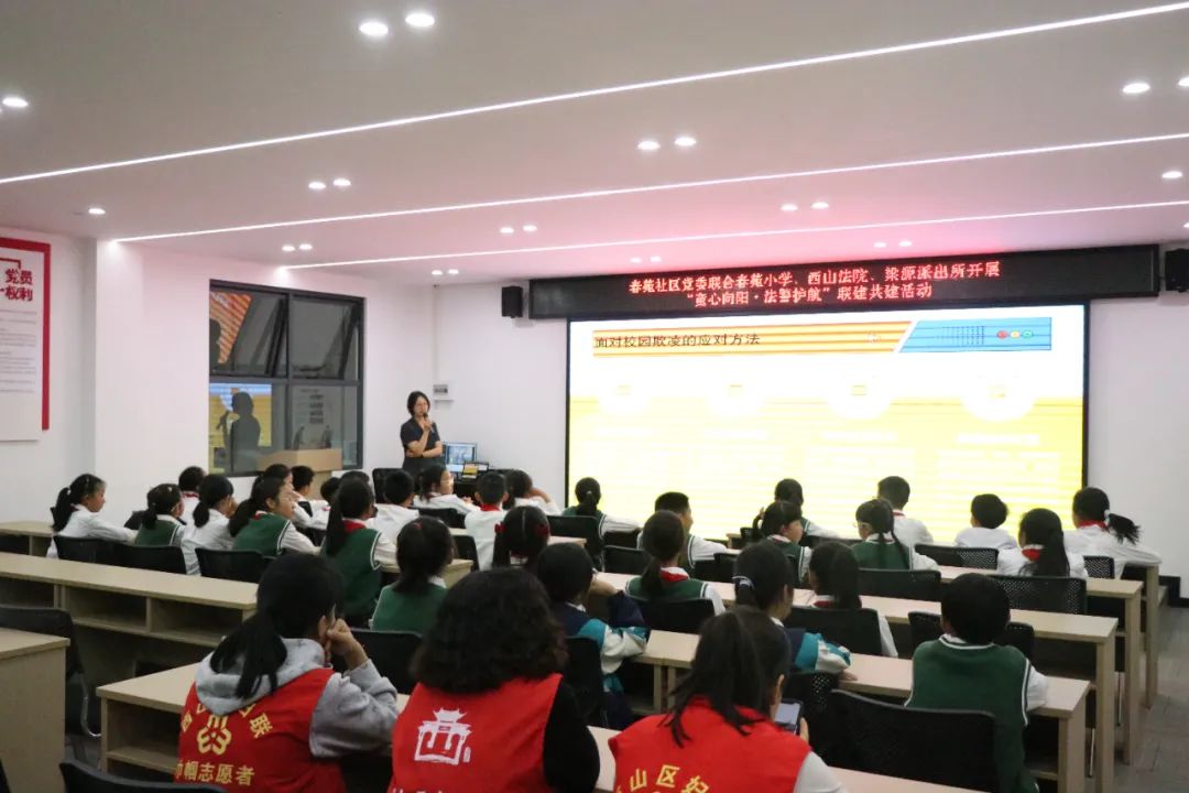 5月23日,西山法院联合梁源派出所走进春苑社区开展“童心向阳·法警护航”主题普法活动。
