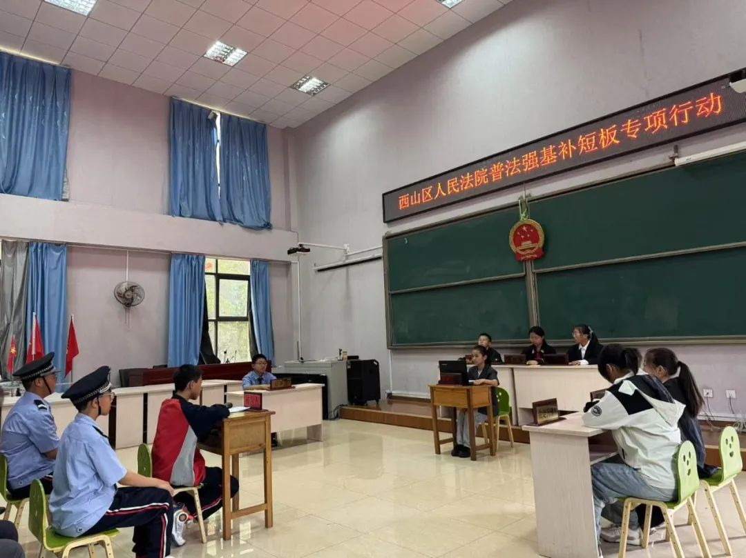 5月20日,西山法院海口法庭干警走进新华中心学校和昆明第十八中学,连续开展两场“模拟法庭进校园”活动。