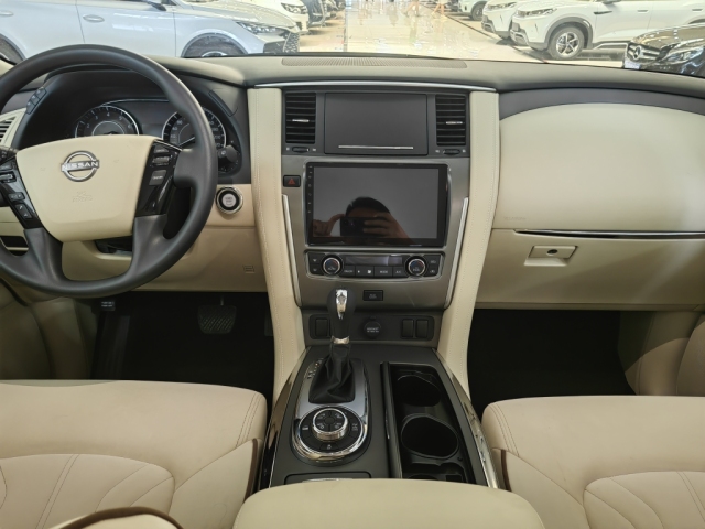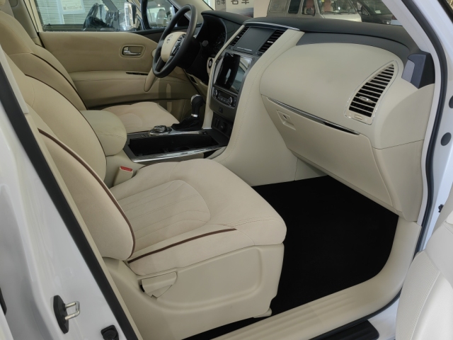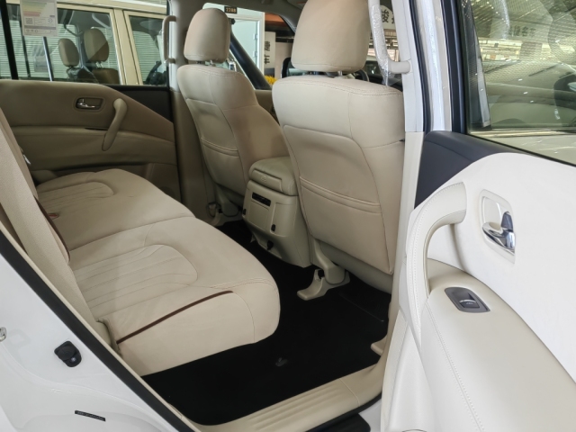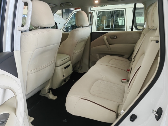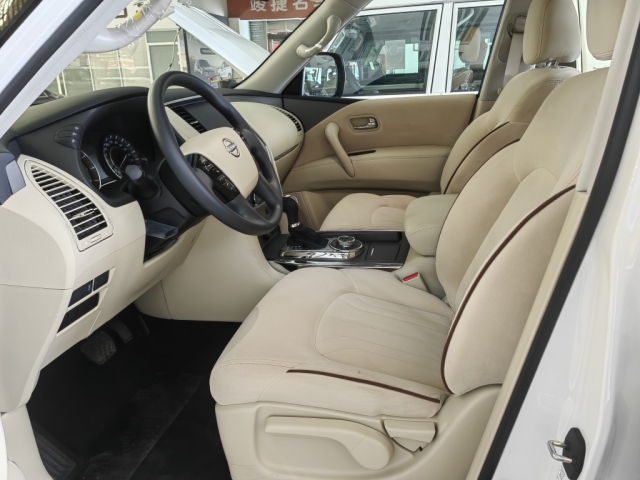 24款日产尼桑途乐乘坐空间十分充裕,前排横向空间和纵向空间都非常充裕,座椅宽大厚实,低配采用织物材质,高配车型为真皮包裹,途乐Y62给中间座位同样配有头枕头,并在扶手箱内设有两个杯架。前排支持腰部支撑调节,新车第二排空间相当充裕,此外还可以放倒,Y62全系中央扶手箱设有冰箱功能,夏季在也不用担心没有冷饮了。