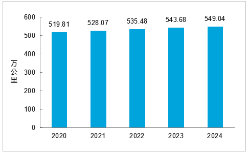 图1 2020-2024年年末全国铁路营业里程