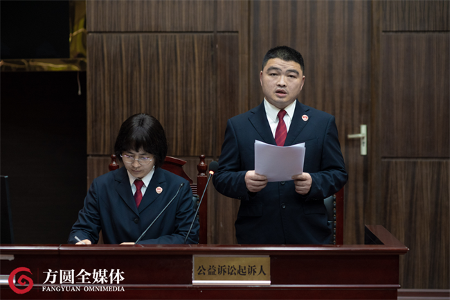 谢新星(右)作为公益诉讼起诉人代表出庭。(图片来源:受访者供图)
