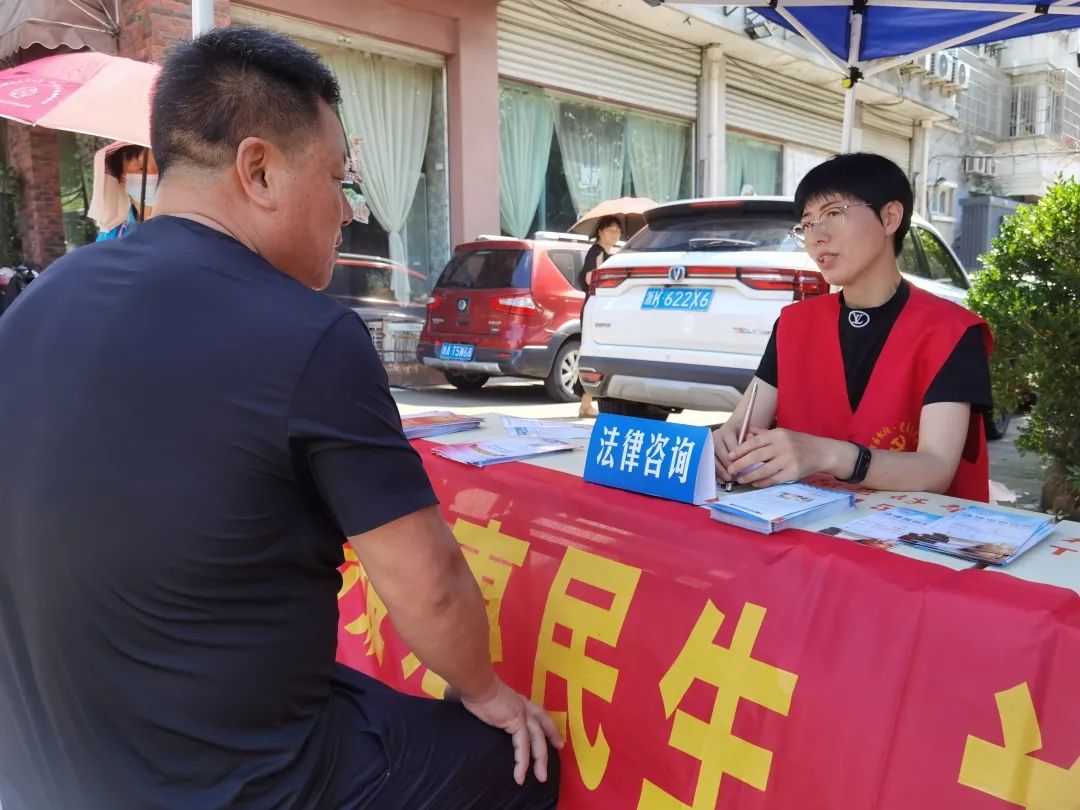 普法宣传队工作人员还向前来购物的群众免费派发普法环保袋、民法典、宪法、反诈骗等方面的宣传折页,让过往群众学习法律知识,现场解答法律咨询。