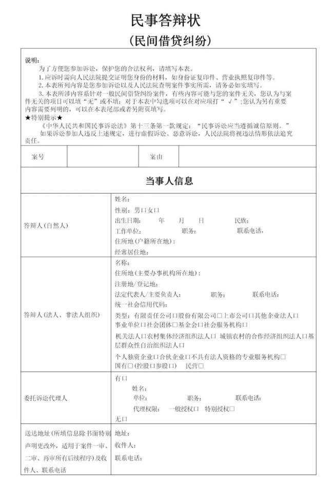 此次发布的起诉状、答辩状示范文本,针对金融借款、民间借贷、劳动争议等11种常见多发的民事案件类型,采用表格化、要素式方式,列明当事人信息、诉讼请求、事实和理由等,让群众看得明白,用得方便。