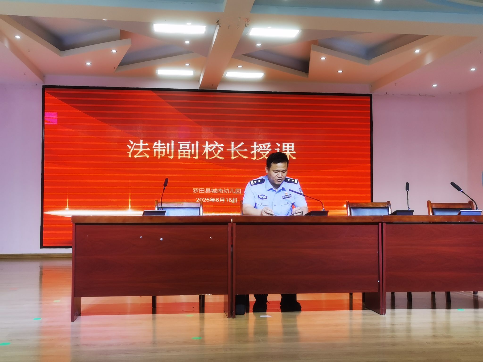 为切实提升教职工法治素养,营造安全、文明、和谐的育人环境,6月16日下午,罗田县城南幼儿园特邀法治副校长、罗田县公安局凤山派出所熊所长在园内四楼报告厅,面向全体教职工开展了一场主题鲜明的法治教育专题讲座。