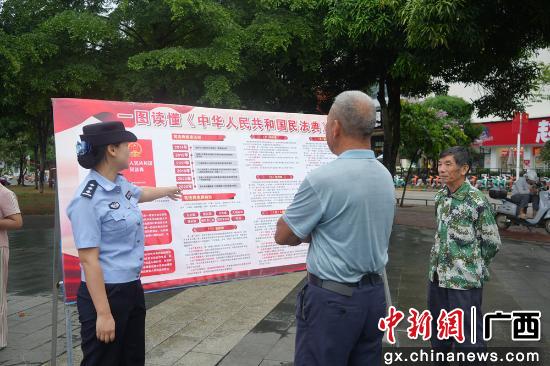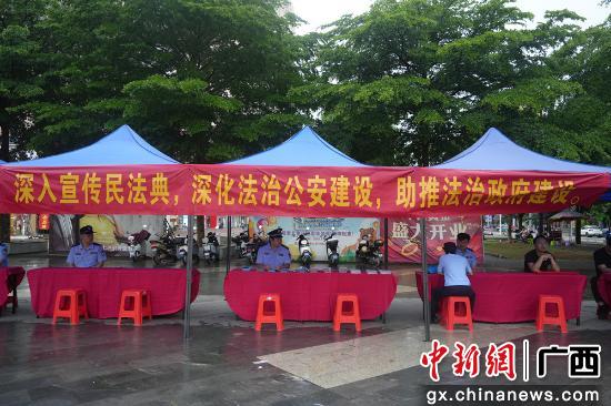 中新网广西新闻5月30日电 (黄秀娟)2025年5月,正值我国第五个“民法典宣传月”,为全面推进法治政府建设,崇左市公安局积极响应号召,5月29日在崇左市中心步行街广场,组织多个警种部门开展“深入宣传民法典,深化法治公安建设”主题宣传活动。